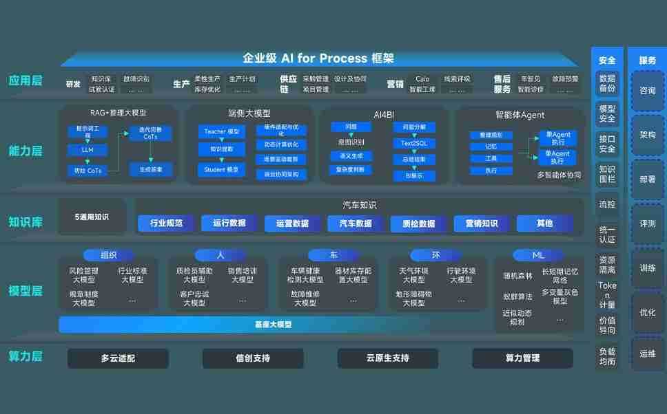端到端的一站式AI工作空间深度融合了从企业战略规划到日常经营的全流程业务板块,,,定向解决车企内部领域多、、部门多、、链条长、、、、场景碎片化等难题,,,,支持车企快速构建以AI为核心的生产力写作体系,,,,实现任务执行与AI能力的无缝集成与交互